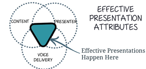 As the diagram illustrates, according to experts, there are three important attributes of an effective presentation.
